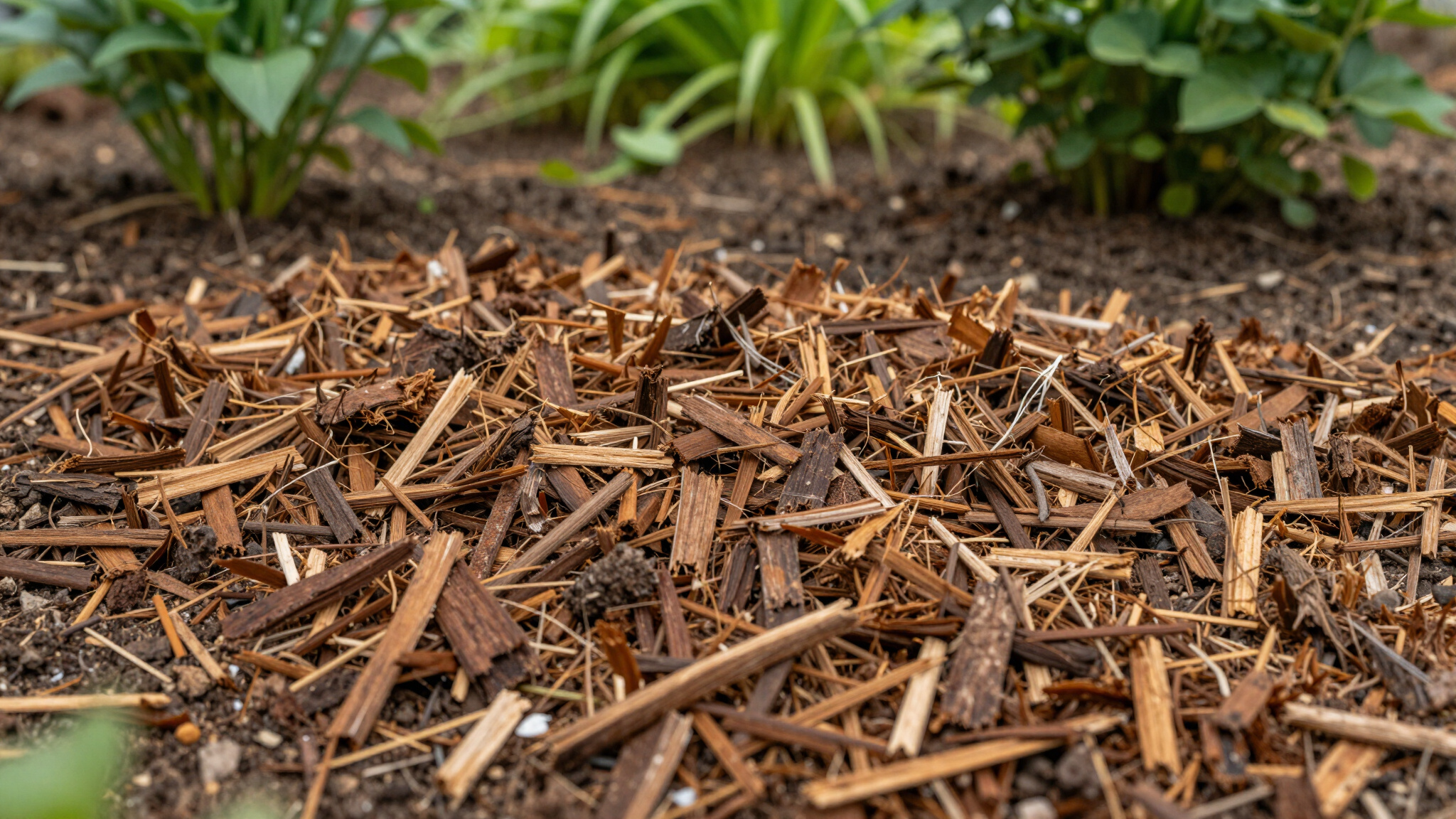 Shredded hardwood mulch that knits together to resist washout, decomposes slowly, and enriches soil as it breaks down.