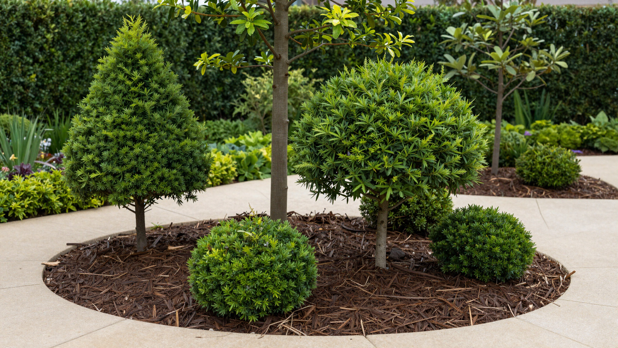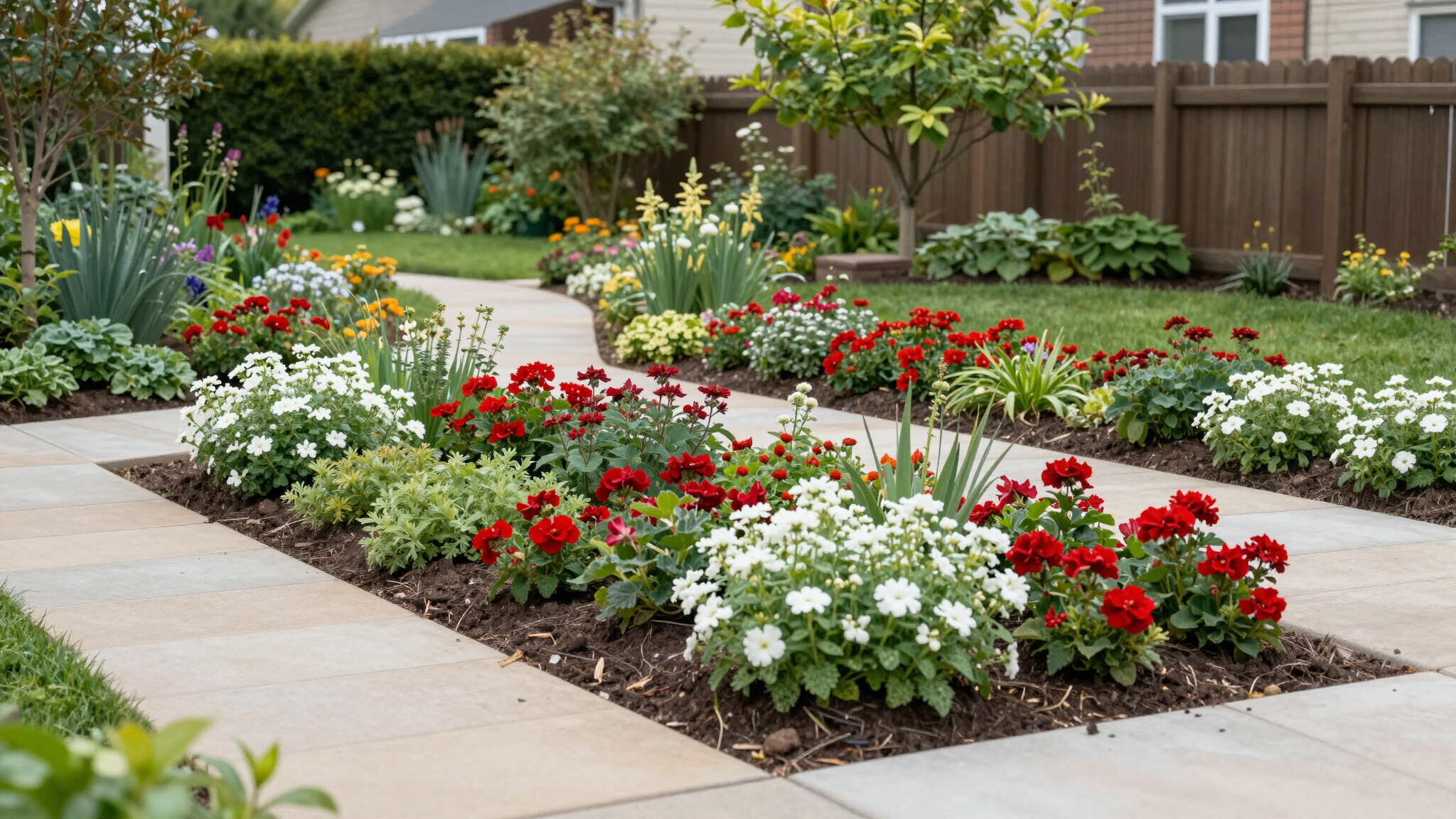 Combine softscaping with hardscaping to create balance. Use trees, shrubs, perennials, and mulched garden beds to soften hard edges, add layers of color and texture, and make your outdoor space feel more natural and inviting.