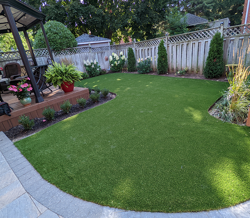 Whether you’re looking for a pet-friendly backyard, a backyard putting green, or a clean "evergreen" front lawn, our turf installations provide a lush, soft-to-the-touch surface that remains green from the first thaw in March to the first snowfall in November. It’s the ultimate solution for a high-end, high-traffic yard that never looks tired.